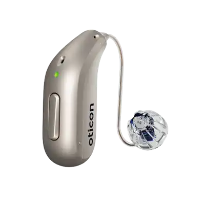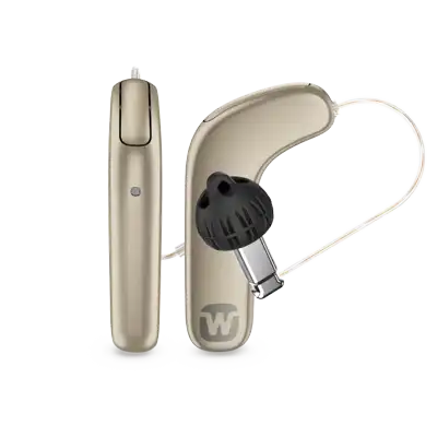 Sehr klein, leistungsstark, mit Akku-Option und App-Steuerung. Für leichte bis starke Hörverluste geeignet.
