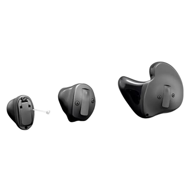 Massgefertigt, sitzt tief im Gehörgang. Optimal für maximale Diskretion und natürliches Richtungshören. Ideal für Beruf, Brille, und Sport.